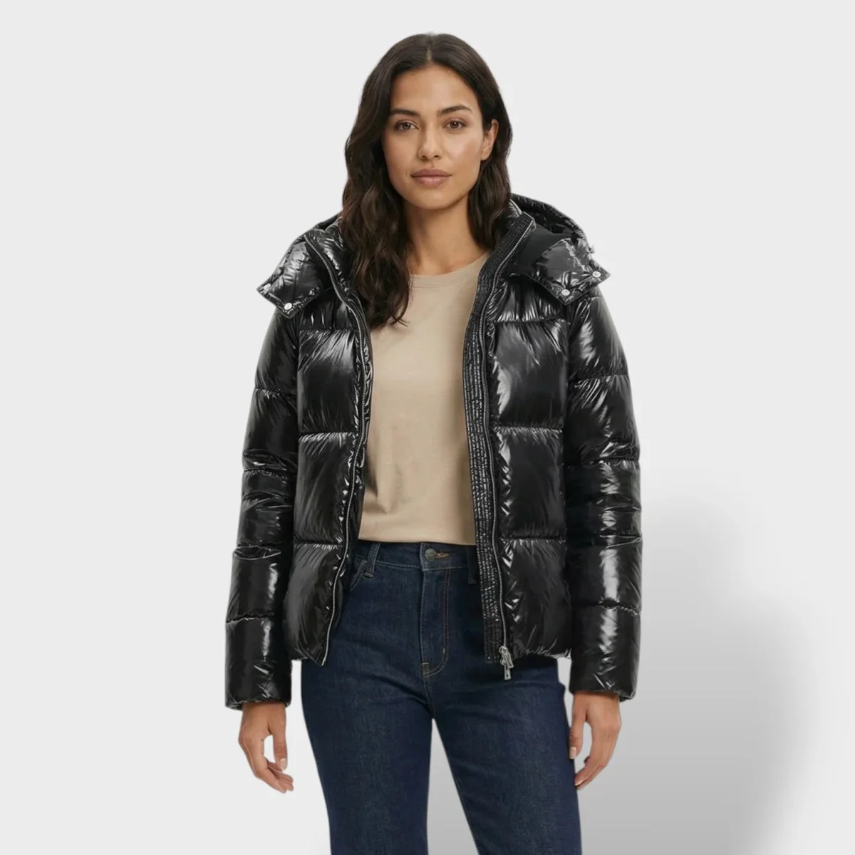 Chaqueta Acolchada Brillante con Capucha